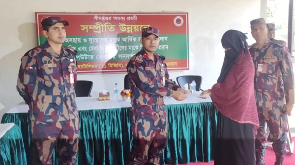 বিজিবর এক প্রেস বিজ্ঞপ্তির মাধ্যমে জানা যায়, নাইক্ষ্যংছড়ি ১১ বিজিবির ব্যবস্থাপনায় নাইক্ষ্যংছড়ি জোনের আওতাধীন এলাকায় বসবাসরত ৪০ জন অসচ্ছল ও মেধাবী শিক্ষার্থীদের শিক্ষা উপবৃত্তি টাকা হস্তান্তর, ৭জন গরীব, অসহায় ও দুস্থ পাহাড়ি-বাঙালি জনসাধারণের মাঝে এ অনুদান প্রদান করা হয়।