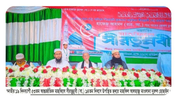 তৌহিদুল ইসলাম কায়রু লোহাগাড়া, চট্টগ্রাম। যুগশ্রেষ্ঠ আলেম হযরত মাওলানা হাফেজ আহমদ প্রকাশ শাহ্ সাহেব কেবলা চুনতী কর্তৃক প্রবর্তিত ১৯ দিনব্যাপী ৫৩তম আন্তর্জাতিক মাহফিলে সীরতুন্নবী (সা.) ১৪তম দিবসের অনুষ্ঠান চট্টগ্রাম লোহাগাড়া