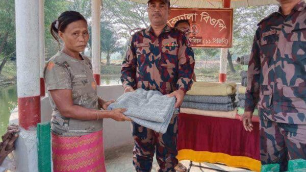 জাহাঙ্গীর আলম কাজল,নাইক্ষ্যংছড়ি: নাইক্ষ্যংছড়ি ১১ বিজিবির অধীনস্থ চাকঢালা বিজিবি কর্তৃক শীতার্তদের মাঝে কম্বল বিতরণ করা হয়েছে। শুক্রবার সকাল সাড়ে ১০ টার দিকে নাইক্ষ্যংছড়ি ১১ বিজিবির অধীনস্থ চাকঢালা বিওপি কমান্ডার নায়েক
