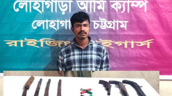 দেলোয়ার হোসেন রশিদী: চট্টগ্রামের লোহাগাড়ায় বড়হাতিয়া ইউনিয়নের ০৮ নং ওয়ার্ড এলাকায় অভিযান চালিয়ে তৌহিদ গ্রুপের একজন সক্রিয় সদস্যকে আটক করেছে বাংলাদেশ সেনাবাহিনী। এ সময় তার কাছ থেকে তিনটি একনলা এলজি,