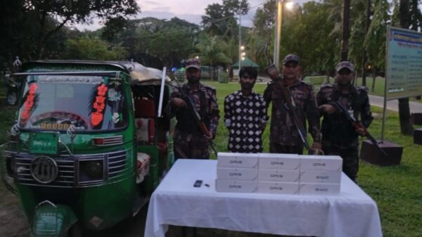 জাহাঙ্গীর আলম কাজল, নাইক্ষ্যংছড়ি: বান্দরবানের নাইক্ষ্যংছড়ি সীমান্তে আবারও বড় ধরনের মাদক চোরাচালান রুখে দিয়েছে বর্ডার গার্ড বাংলাদেশ (বিজিবি)। সোমবার (২১ জুলাই) দুপুরে জামছড়ি বিওপি’র টহলদল অভিযান চালিয়ে প্রায় ১০ হাজার