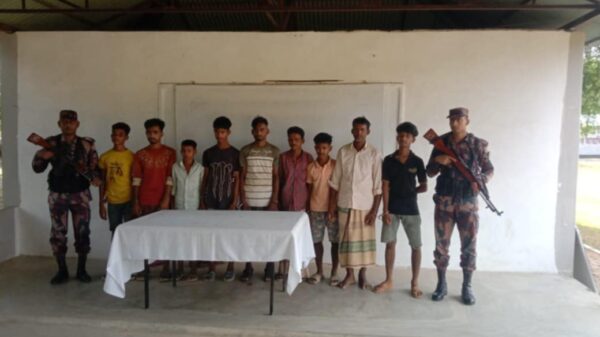 জাহাঙ্গীর আলম কাজল,নাইক্ষ্যংছড়ি: বান্দরবানের নাইক্ষ্যংছড়ি সীমান্তে ৯ চোরাচালান শ্রমিককে আটক মামলা প্রক্রিয়া চলছে। রোববার,(১৩ এপ্রিল) বেলা ৯ টায় নাইক্ষ্যংছড়ি ১১ বিজিবির সহ-কারীপরিচালক মোঃ আল আমিন লেম্বুছড়ি সীমান্ত সীমান্ত সড়ক থেকে